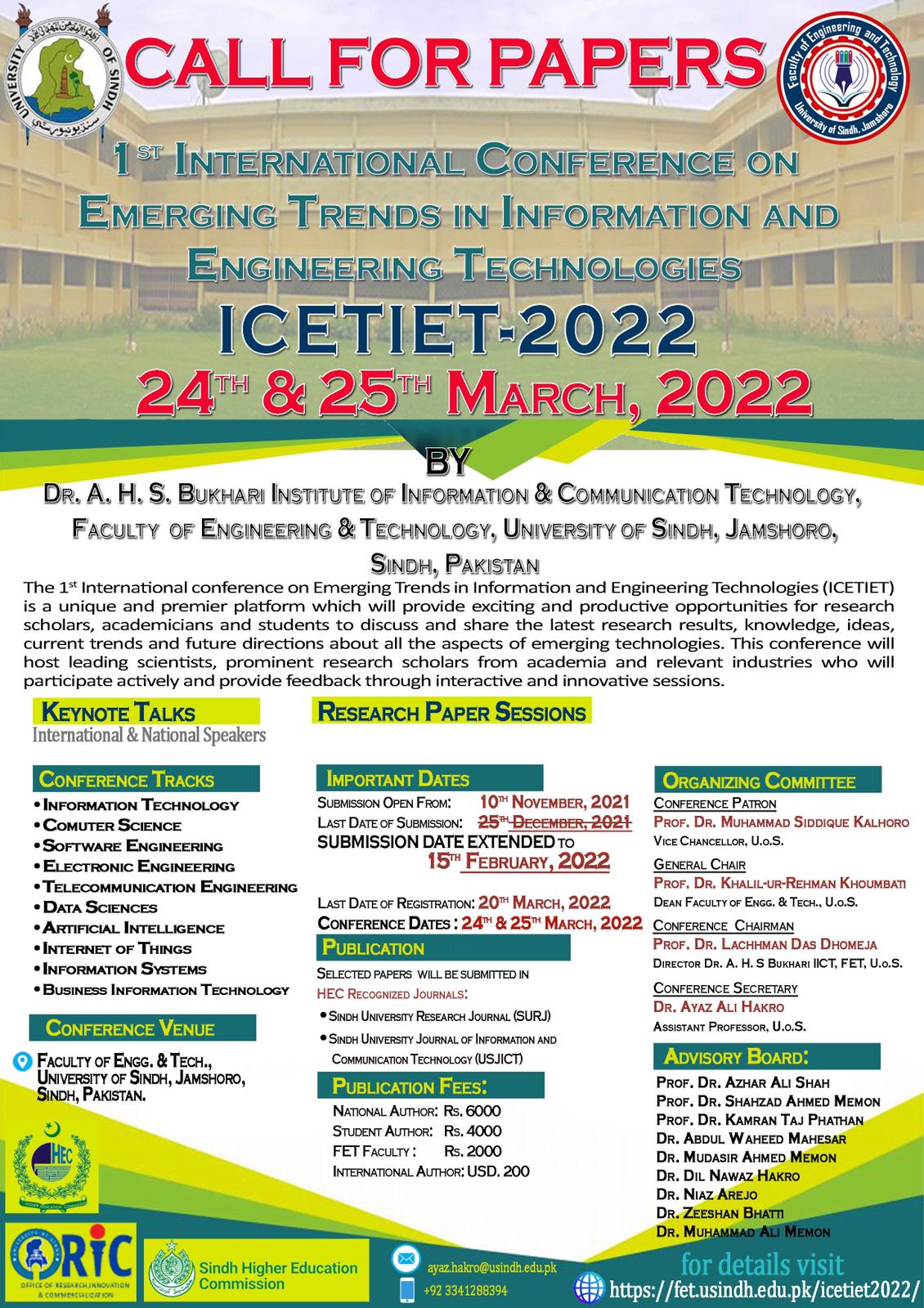 The 1st International conference on Emerging Trends in Information and Engineering Technologies (ICETIET) is a unique and premier platform which will provide exciting and productive opportunities for research scholars, academicians and students to discuss and share the latest research results, knowledge, ideas, current trends and future directions about all the aspects of emerging technologies. This conference will host leading scientists, prominent research scholars from academia and relevant industries who will participate actively and provide feedback through interactive and innovative sessions.