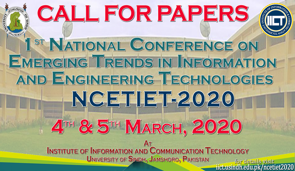 The National Conference on Information and Communication Technologies is a forum for researchers and scholars working in various fields of Information Communication Technologies (ICT), to discuss and share their ideas, current trends and future directions. This conference provides an opportunity for the researchers, faculty members, PhD and MPhil scholars to interact and seek feedback on their ideas and research outcomes in a constructive atmosphere. This conference will host prominent researchers and scholars from the industry and academia, who will participate actively and provide valid feedback through some healthy contributions.
